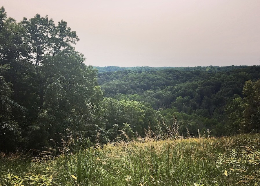 The preserve is mostly forested except for a brushy old field south of US-50, which transitions into young riparian woods near the river. Much of the forest is around 100 years old, but there are also younger woods and brushy habitat, especially along Canaanville Run, a small stream that runs through the middle of the preserve. A major gas pipeline clearing crosses the property, and there are also small gas wells that predate the conservation easement. While the resulting fragmentation of the forest is unfortunate, the pipeline clearing provides some spectacular views where trails cross it.