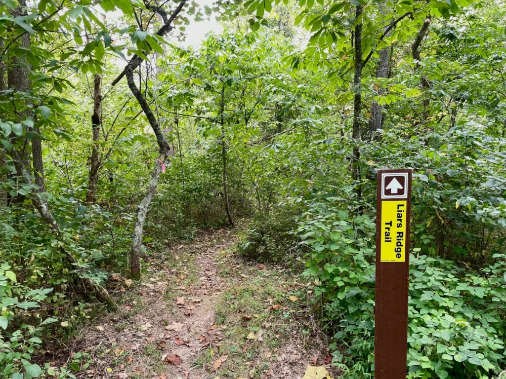 This 0.35-mile trail begins and ends on Liar’s Ridge Trail. It offers a way to circumvent one of the steepest parts of the Liar’s Ridge Trail and avoid climbing over fallen trees. The eastern end of it, where it crosses a tiny stream, is often muddy, but the trail is otherwise easy to walk.