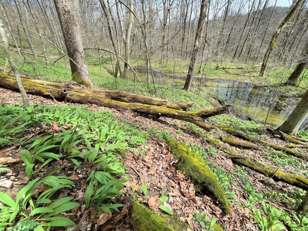 Hardwood forests cover more than 88% of the expansive site, with rugged sandstone outcroppings, steep hillsides and vernal pools, recess caves and sheer cliffs, high ridge tops, and numerous ponds and stream valleys. In addition to native tree species such as white oak, black oak, scarlet oak, shagbark hickory, American beech, sugar maple, and tulip poplar, the family planted more than 300 acres of Virginia pines and white pines, and small stands of black walnut trees. A portion of the land that was mined for coal in the past has reforested.