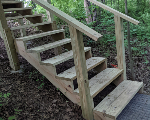 In April 2021, local residents led by neighbor Merl Almquist built a double-loop walking trail within Peach Preserve. Thanks to Merl, a set of wooden steps with handrails was also added to improve accessibility on the steep portion where the trail begins on Northpoint Drive. Peach Preserve is open to the public but there is no off-street parking; dogs on leashes are welcome.