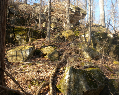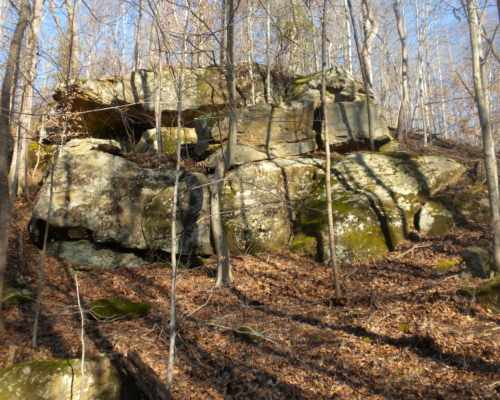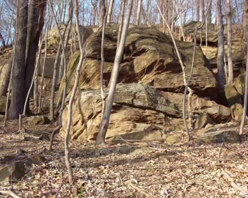 The B&O Railroad formerly passed through much of the Skunk Run valley, and most of the railroad right-of-way is now part of the Athens-Belpre Rail-Trail. This preserve borders the north side of the rail grade east of Ireland Road and also includes part of the gorge of Bingman Spring Run. It provides a possible detour for the rail-trail around a privately owned segment of the rail grade.